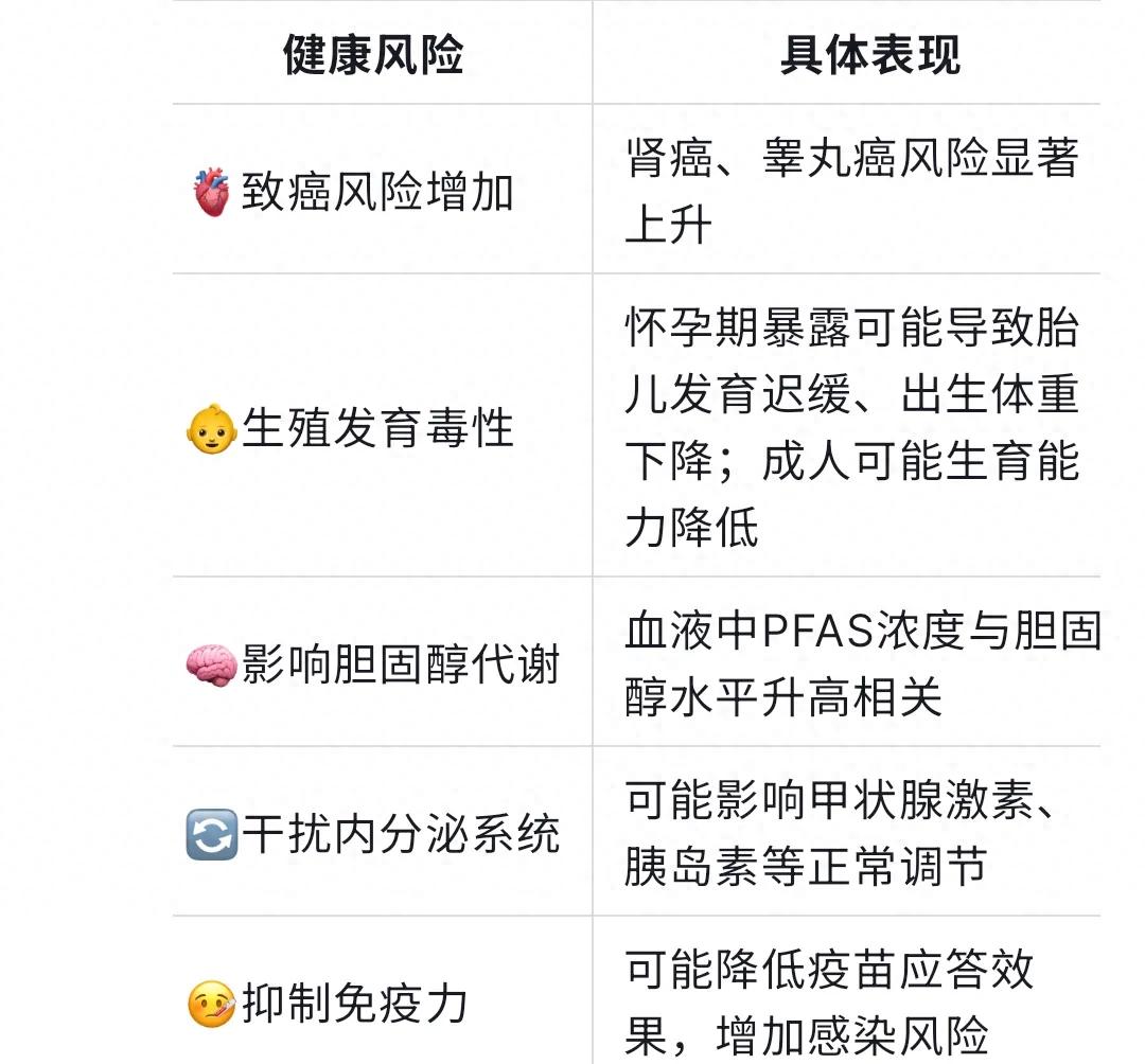 根据美国毒物与疾病登记局(ATSDR)等多方研究,长期接触PFAS可能导致: